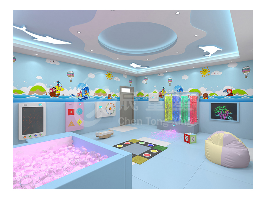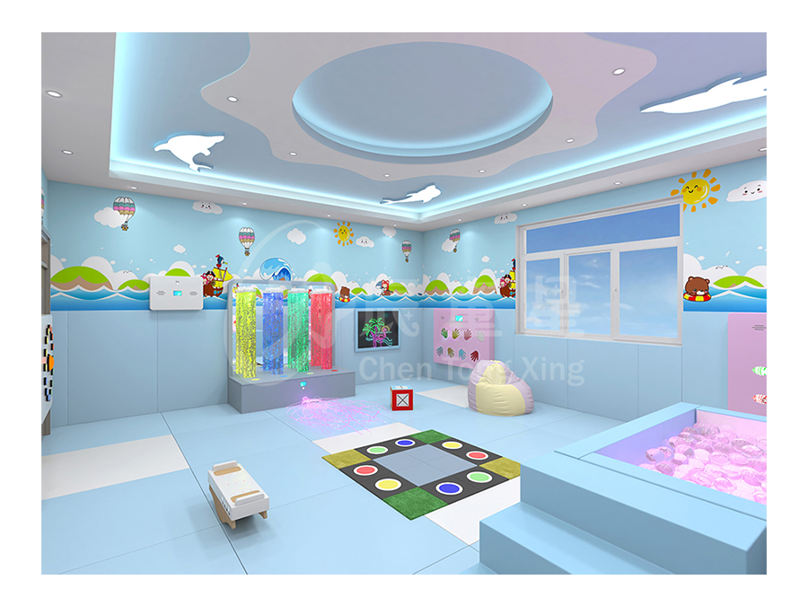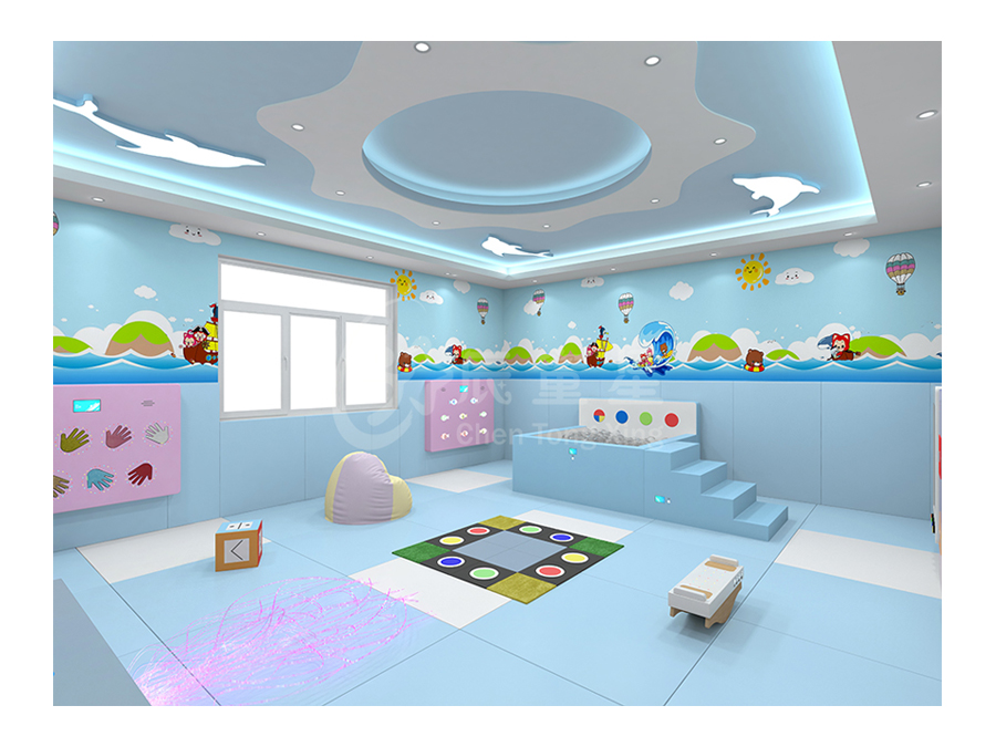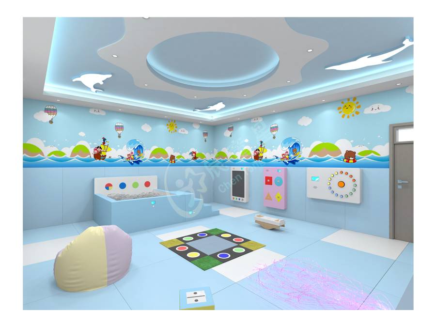 多感官訓(xùn)練室源于“史露西倫”理論,并依據(jù)神經(jīng)生理學(xué)及“蒙臺梭利感官教育”理論,強(qiáng)調(diào)給予有感官障礙和學(xué)習(xí)困難者一個悠閑、舒適、安全的空間環(huán)境,并為他們安排一個充滿感官刺激的環(huán)境,通過控制簡單的器材,使環(huán)境產(chǎn)生多種變化,并于活動中得到感官刺激經(jīng)驗(yàn)。在訓(xùn)練過程中調(diào)動身體各個器官,全方位的激發(fā)興趣,全身心地為兒童服務(wù)。