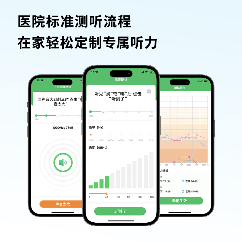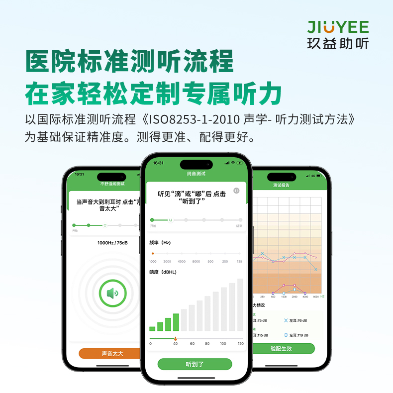 玖益醫(yī)療級智能藍(lán)牙耳機式助聽器(AIR C1 ITE 小功率) 適合輕至中重度聽損,采用玖益獨創(chuàng)“三芯系統(tǒng)技術(shù)”、50dB滿檔增益,110dB最大聲壓級、32通道及AI降噪技術(shù)、智能驗配APP及遠(yuǎn)程驗配、居家5-8分鐘可完成測聽和驗配,140小時長續(xù)航,暢享舒適溝通。
