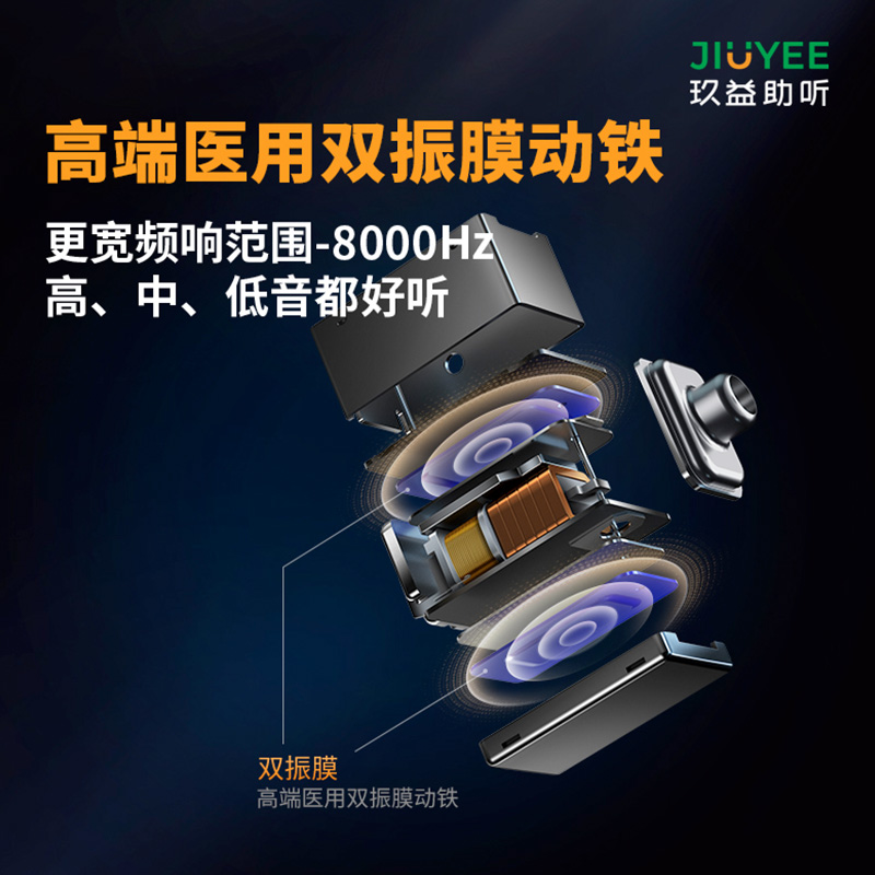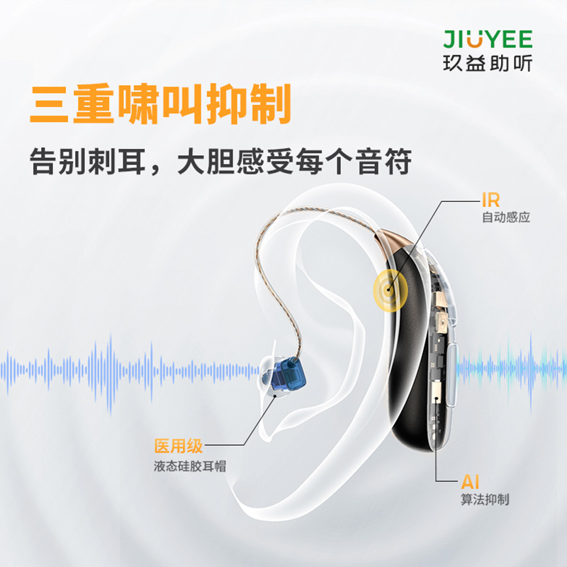 玖益醫(yī)療級智能藍(lán)牙耳背式助聽器(RIC P2 特大功率) 適合重至極重度聽損,采用玖益獨(dú)創(chuàng)“三芯系統(tǒng)技術(shù)”、80dB滿檔增益,140dB最大聲壓級 ,64通道WDRC及AI降噪技術(shù)、智能驗(yàn)配APP及遠(yuǎn)程驗(yàn)配、居家5-8分鐘可完成測聽和驗(yàn)配,IP67防水,140小時長續(xù)航,暢享舒適溝通。