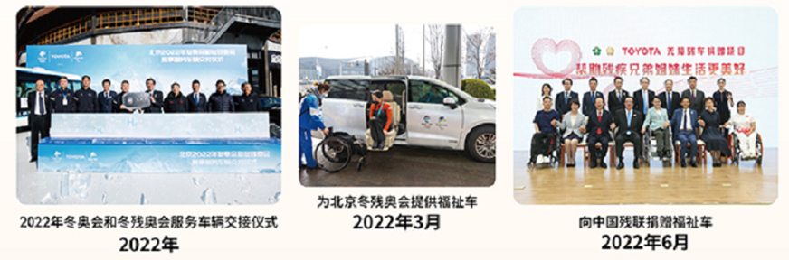 2022年6月,豐田將剛結(jié)束了北京冬殘奧服務(wù)的238輛無障礙車(包括賽那、海艾士、柯斯達(dá)三種車型),全數(shù)捐贈給中國殘疾人聯(lián)合會,并通過中國殘疾人福利基金會下發(fā)到全國215家殘疾人機(jī)構(gòu),用于殘疾人出行,并以此為契機(jī),努力推進(jìn)福祉事業(yè)在中國的發(fā)展。