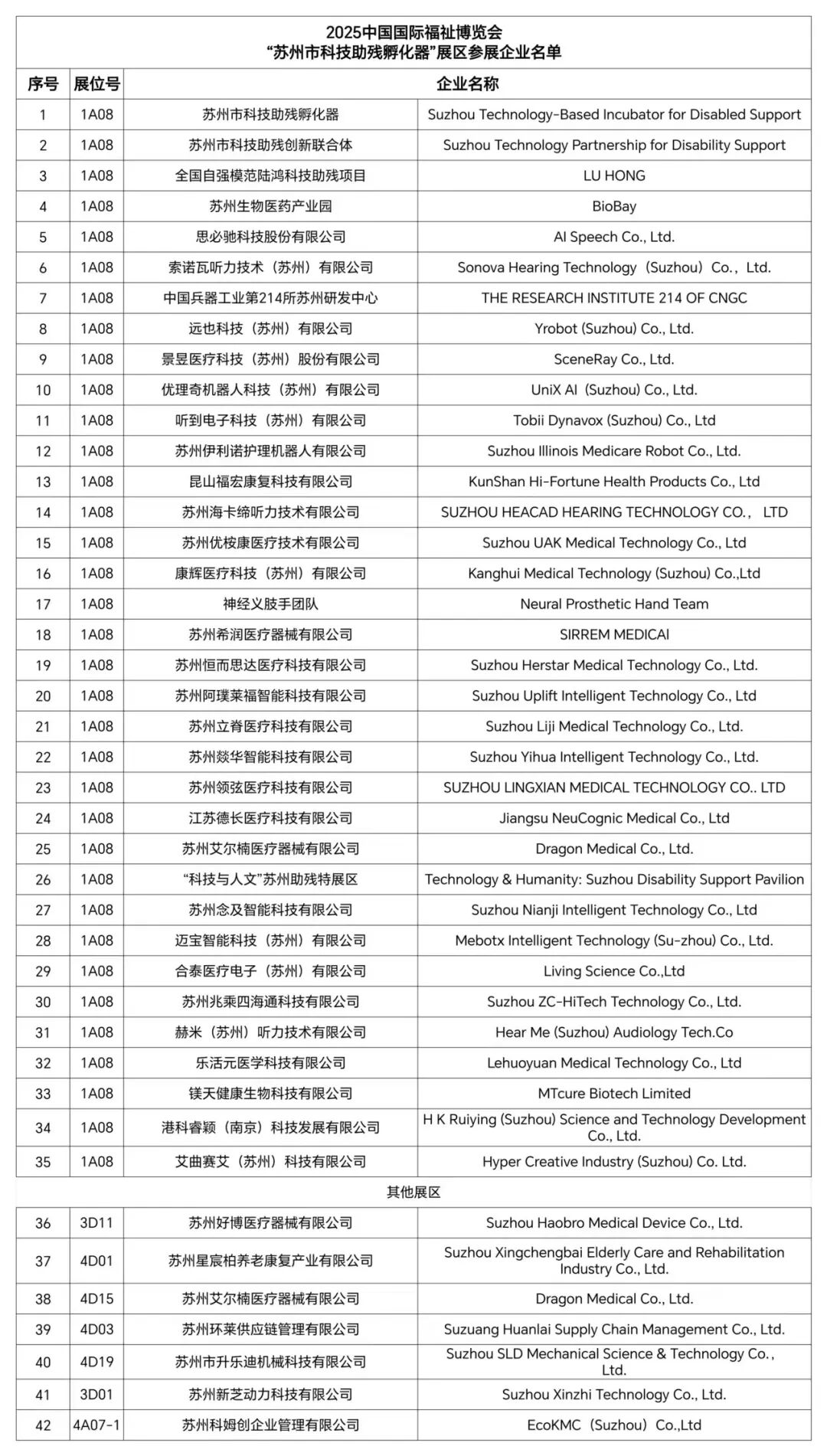 “蘇州市科技助殘孵化器”展區(qū)參展企業(yè)和機構(gòu)名單