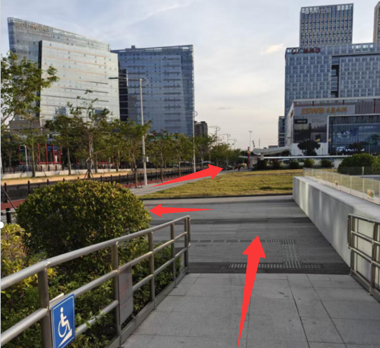 (1)輪椅出行人士請從C口出,使用升降平臺抵達路面。