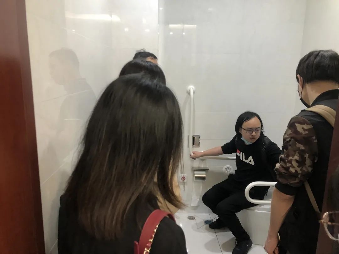 ▲ 參觀團(tuán)體驗(yàn)無障礙衛(wèi)生間