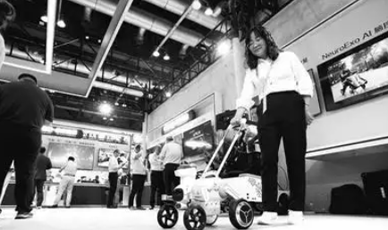 今年的福祉博覽會上,眾多AI科技助殘產品成為人們關注的焦點。王阿姨體驗的“導盲犬小路”是一只搭載了激光雷達和人工智能大模型的智能電子導盲犬,由沈陽理工大學姜月秋教授團隊研發(fā)。它不僅能夠幫助視障人士出行、實現(xiàn)自主避障,還具備特定區(qū)域內智能導航、人臉識別、AI語音對話、場景描述等功能。